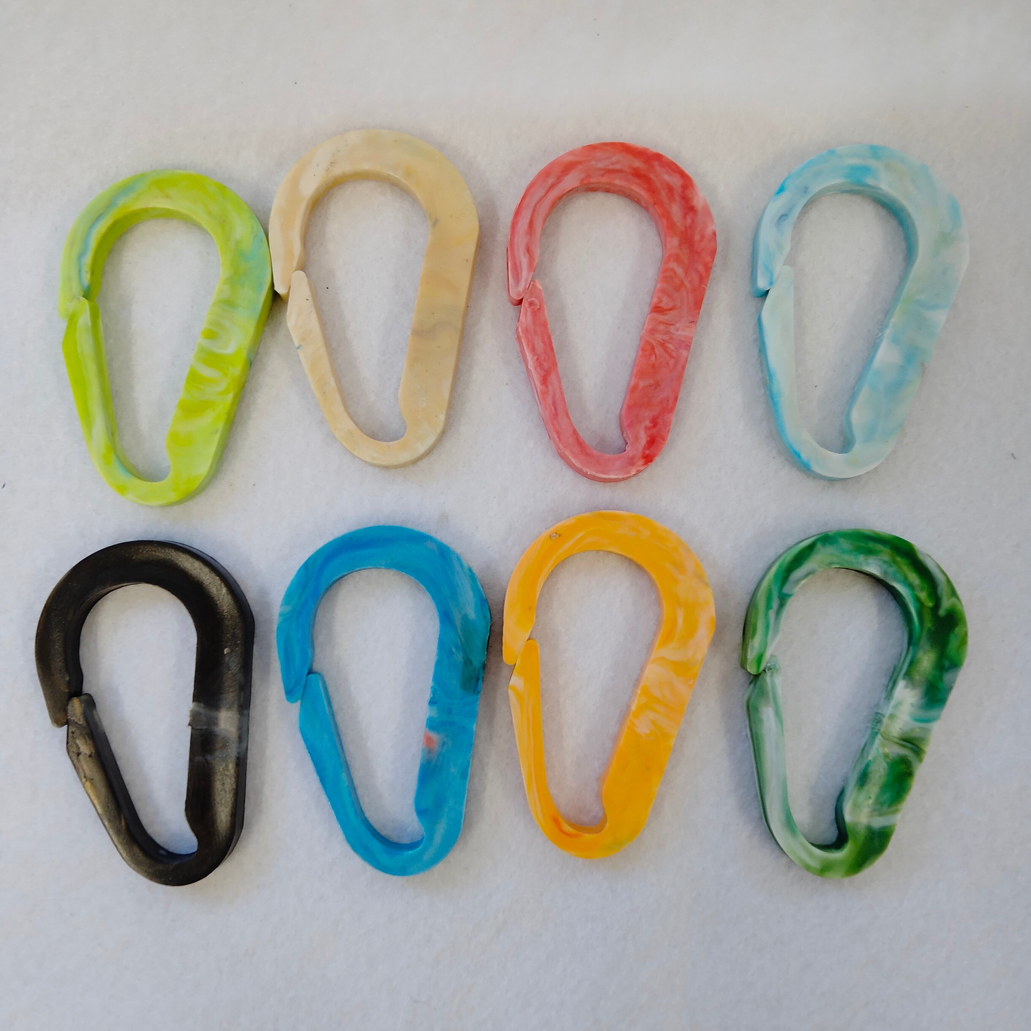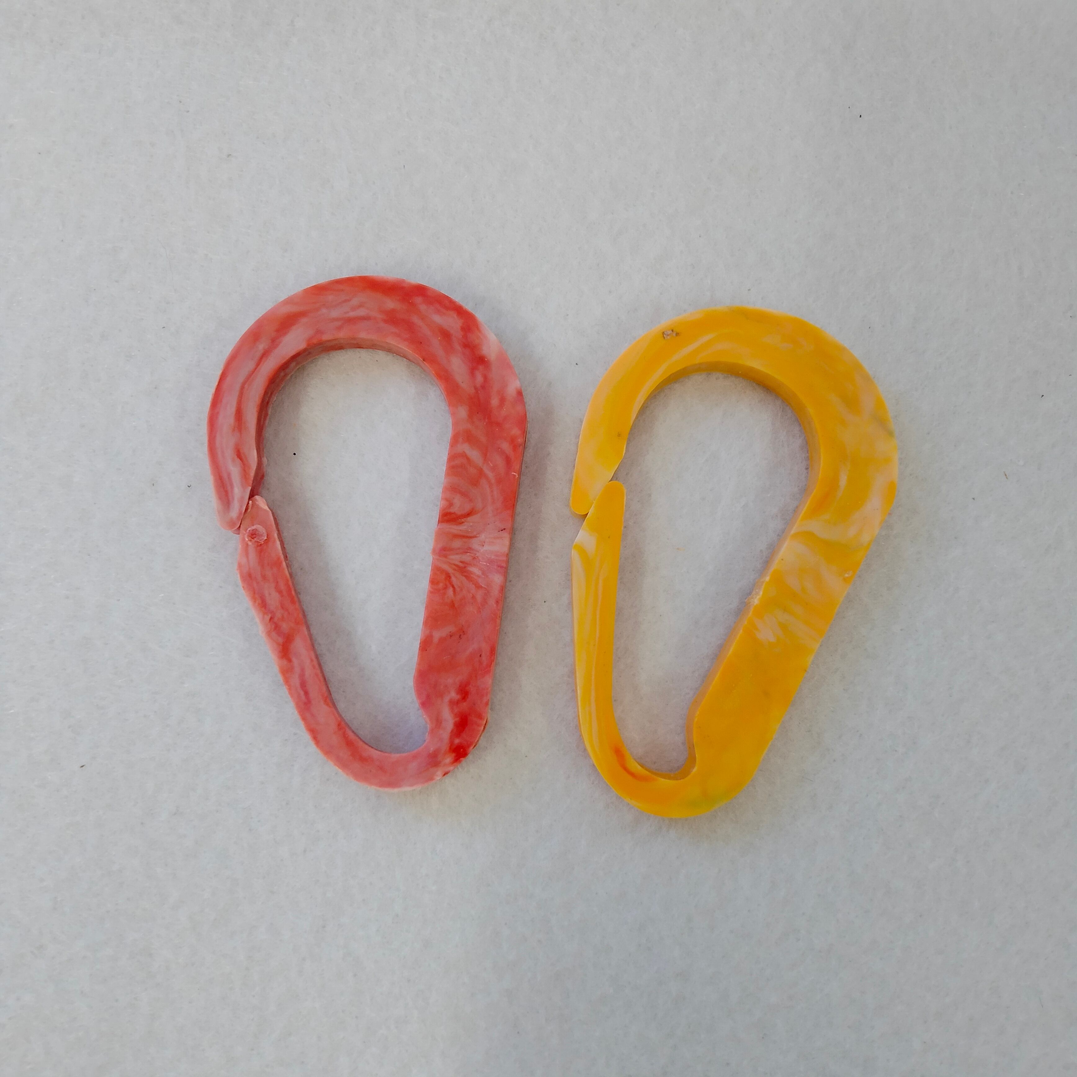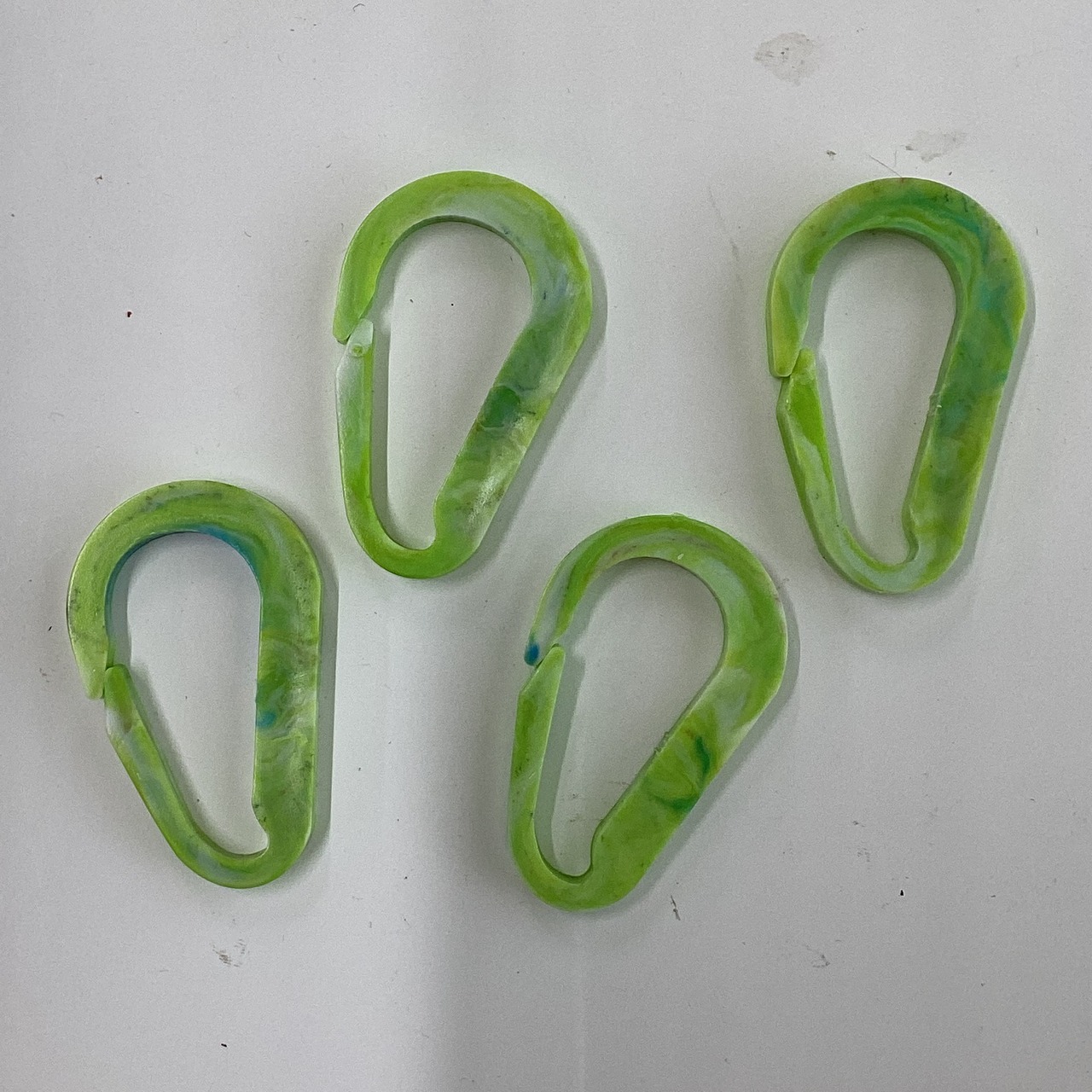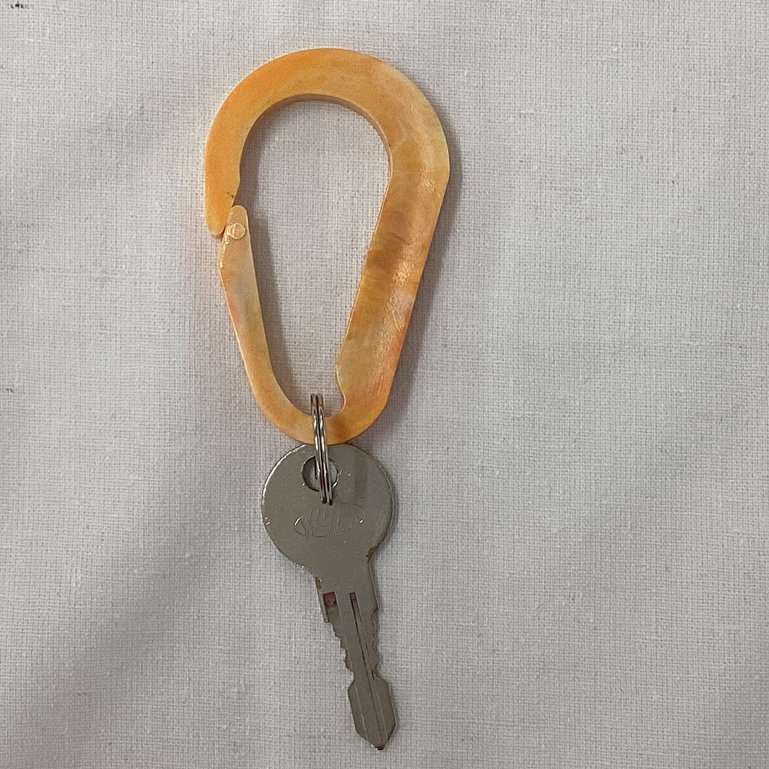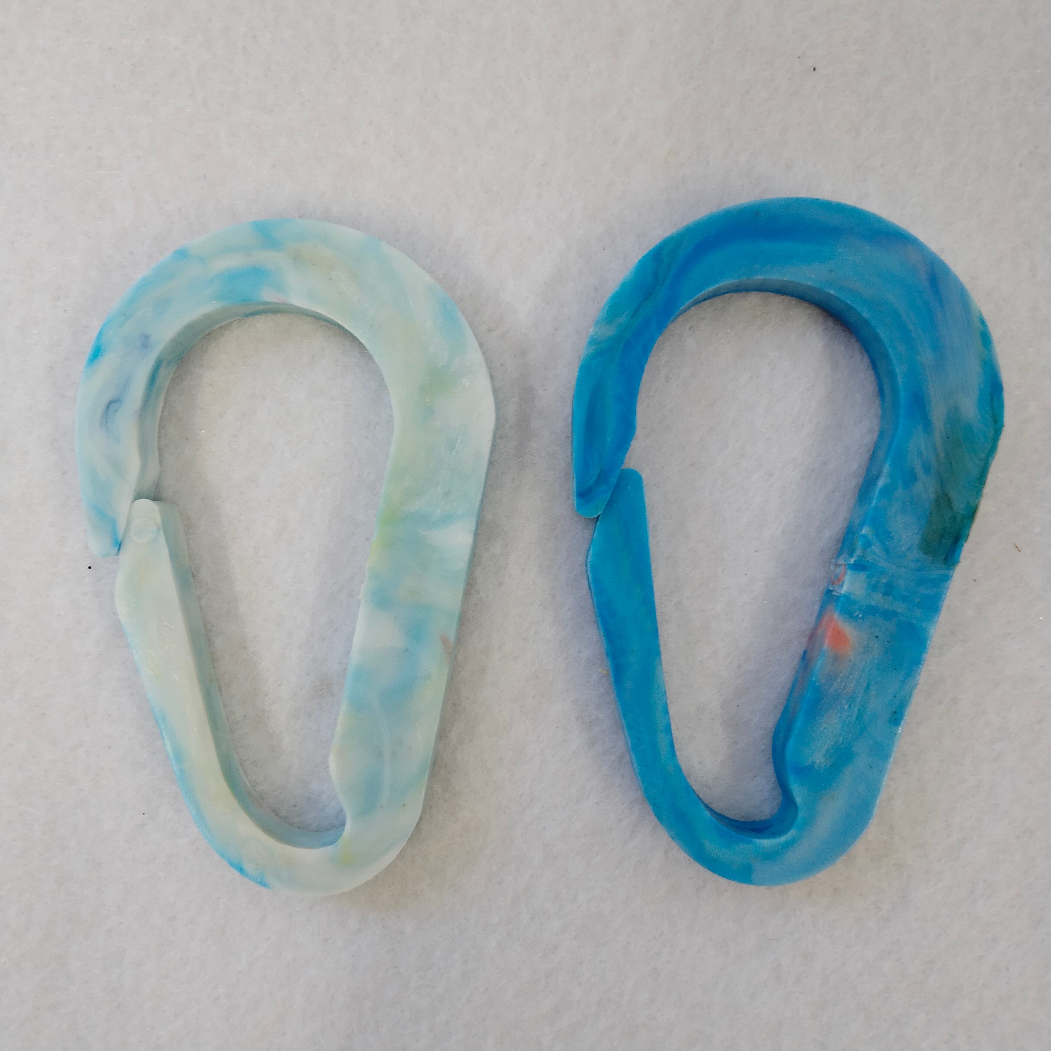 身の回りのプラスチックごみをとかして作った、ユニークなカラビナです。