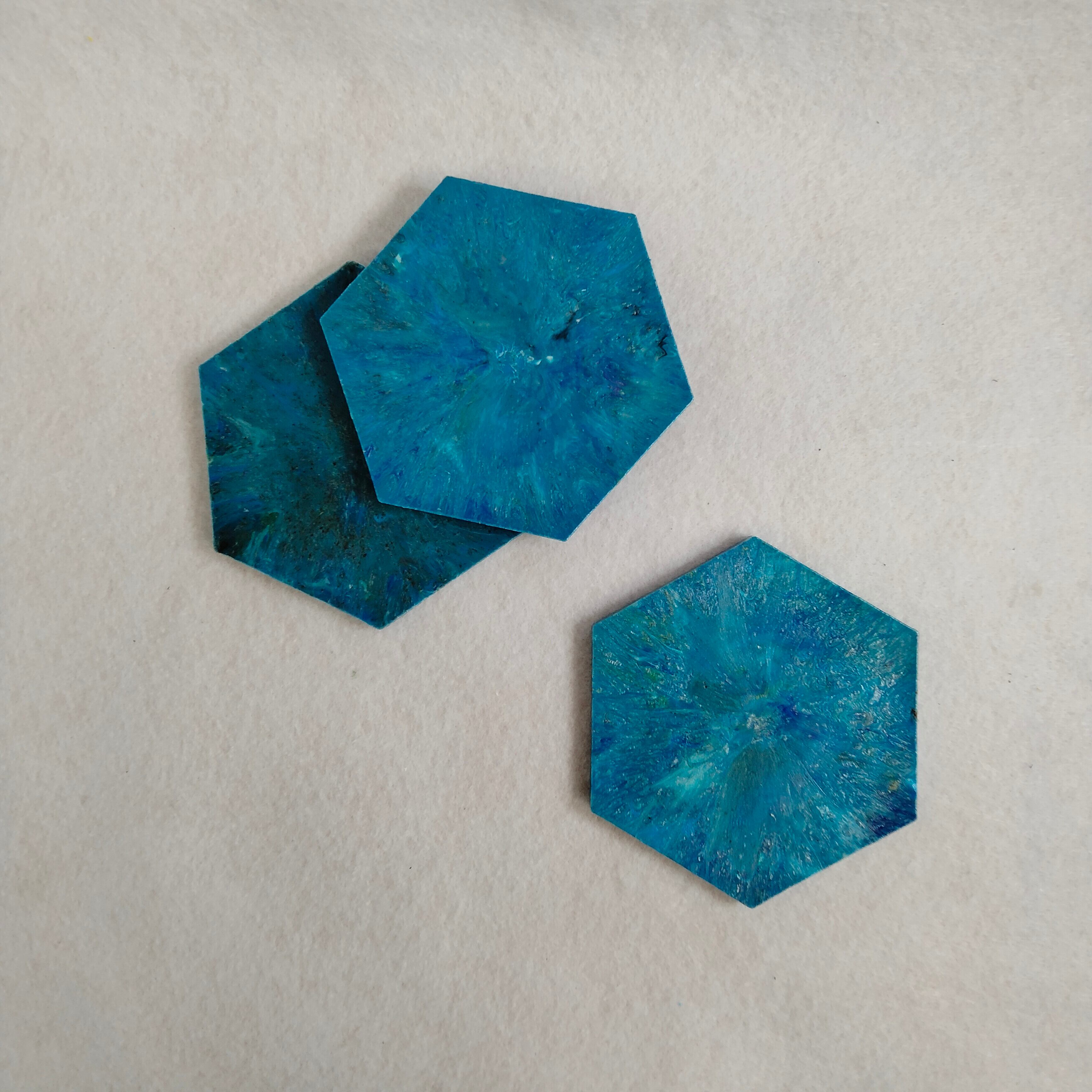 身の回りのプラスチックごみをとかして作った、シンプルなコースターです。