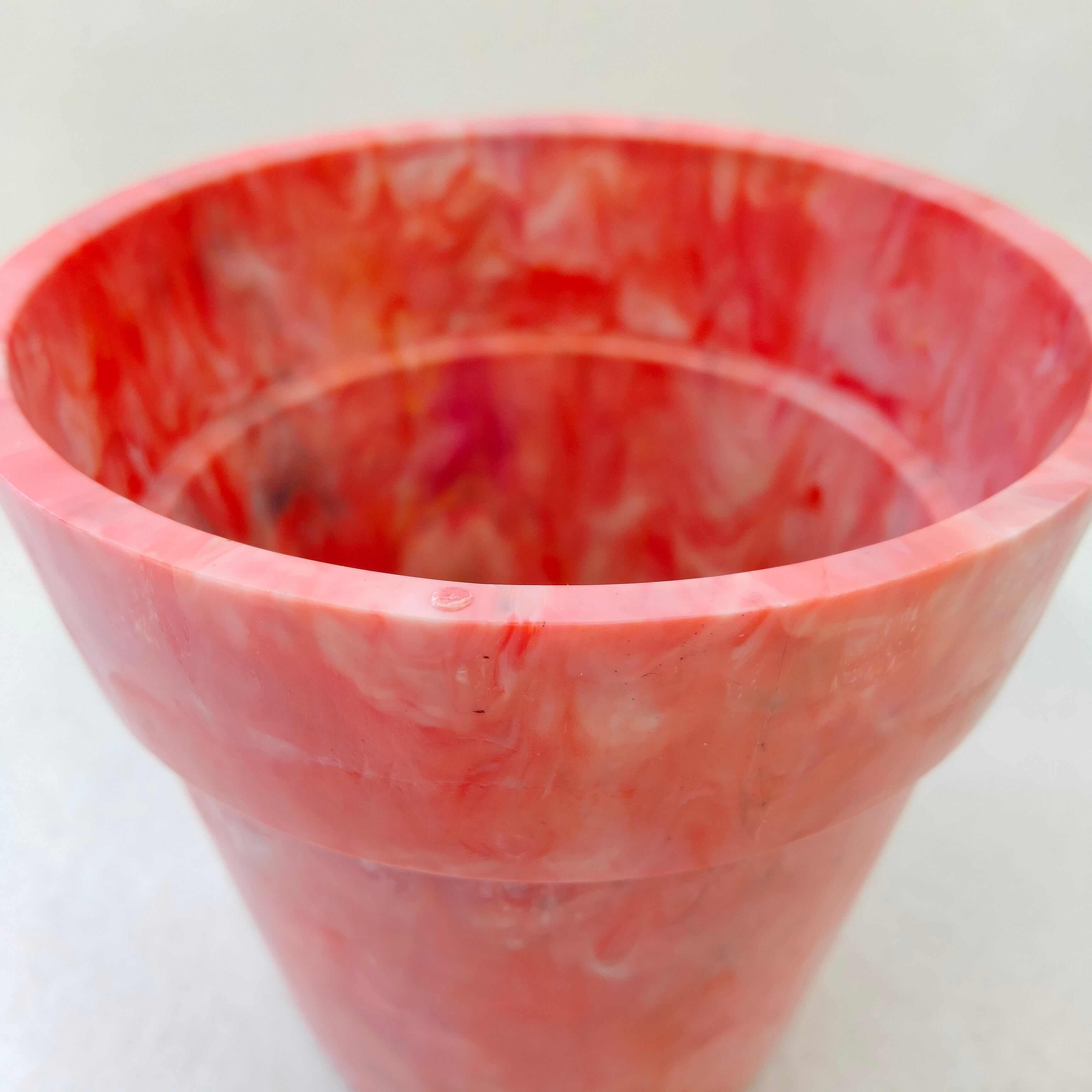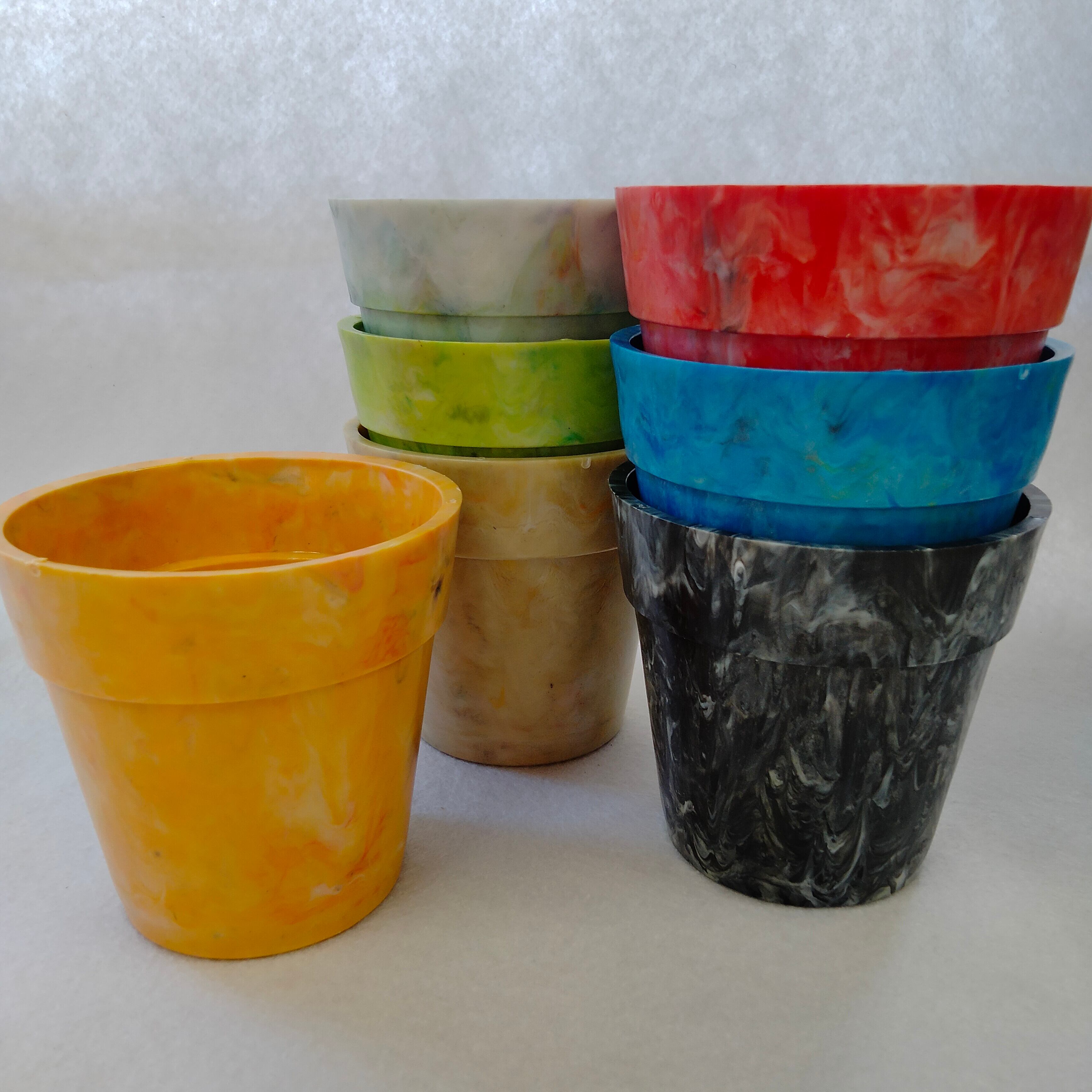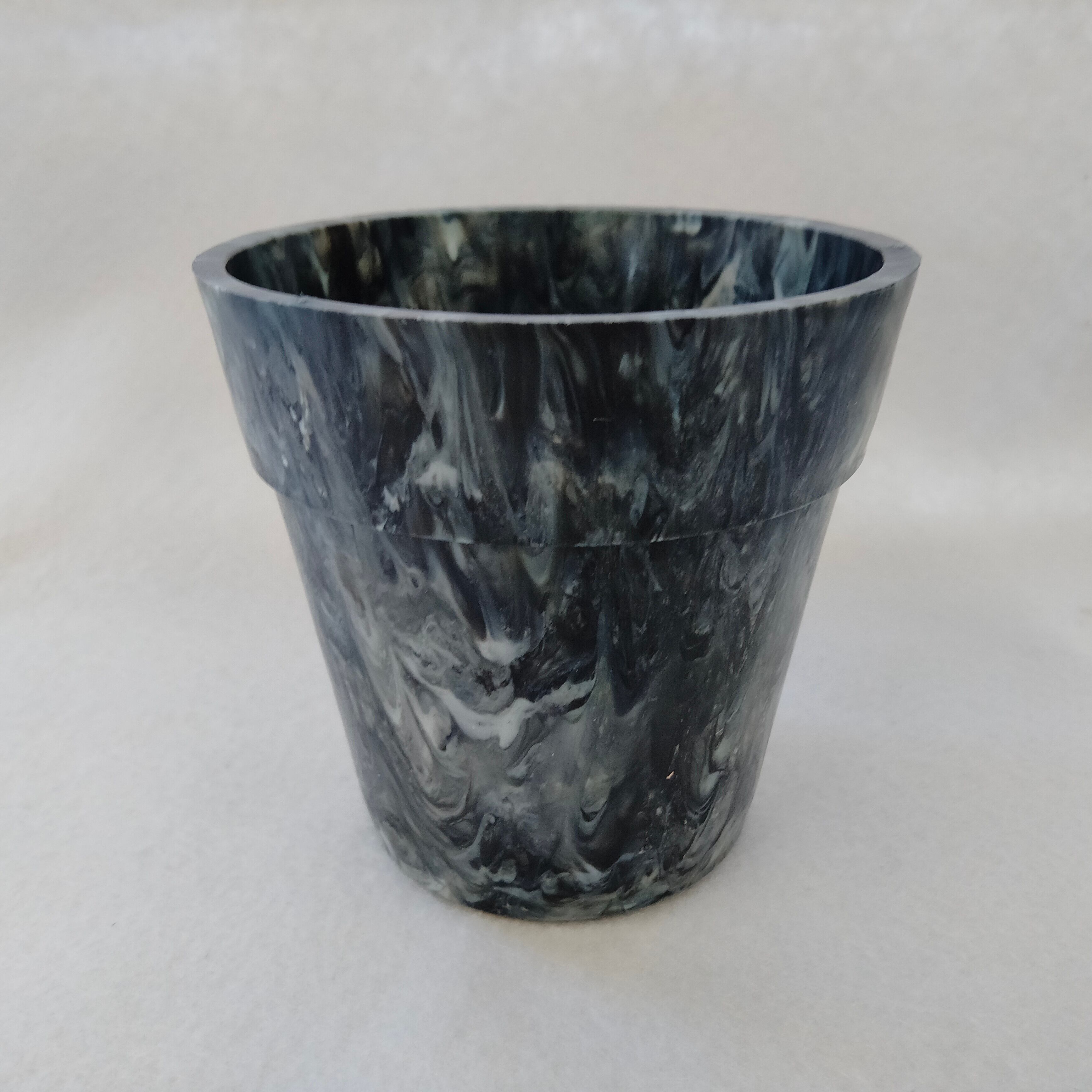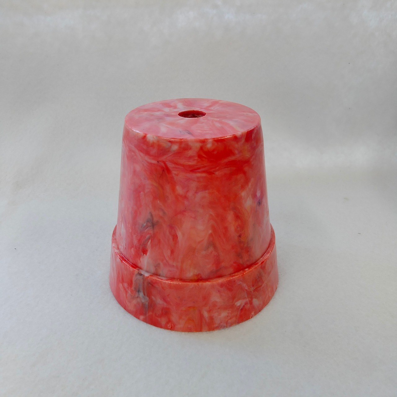 身の回りのプラスチックごみをとかして作った小ぶりな植木鉢です。
