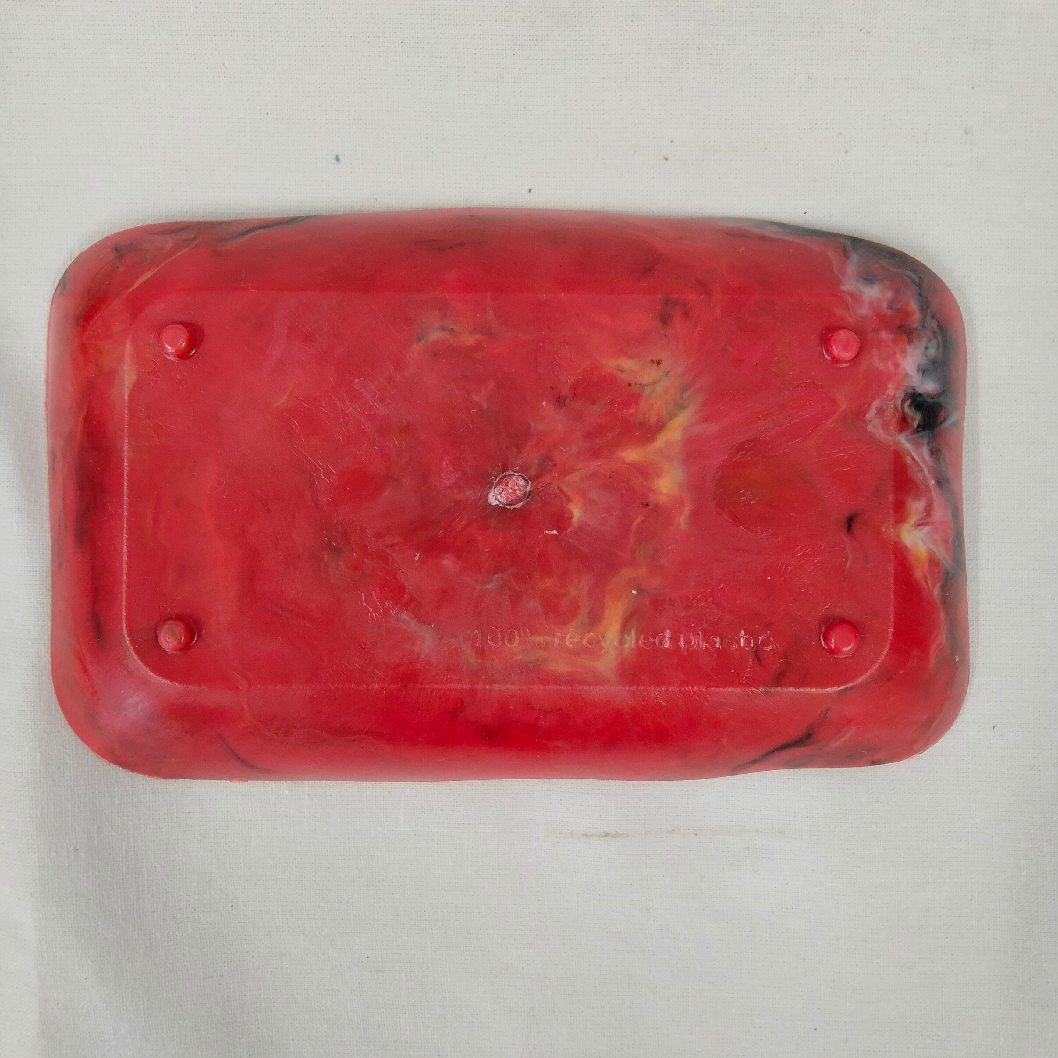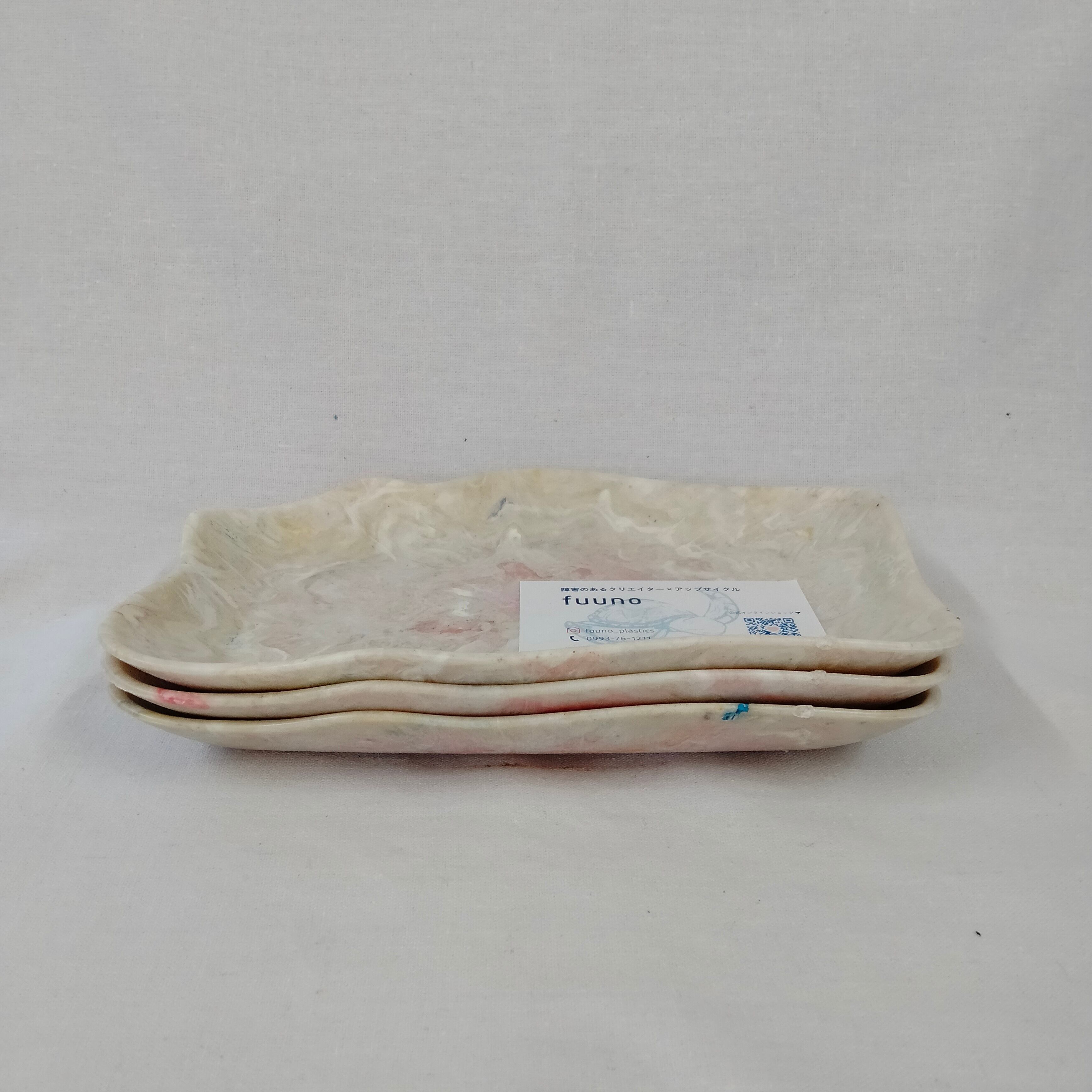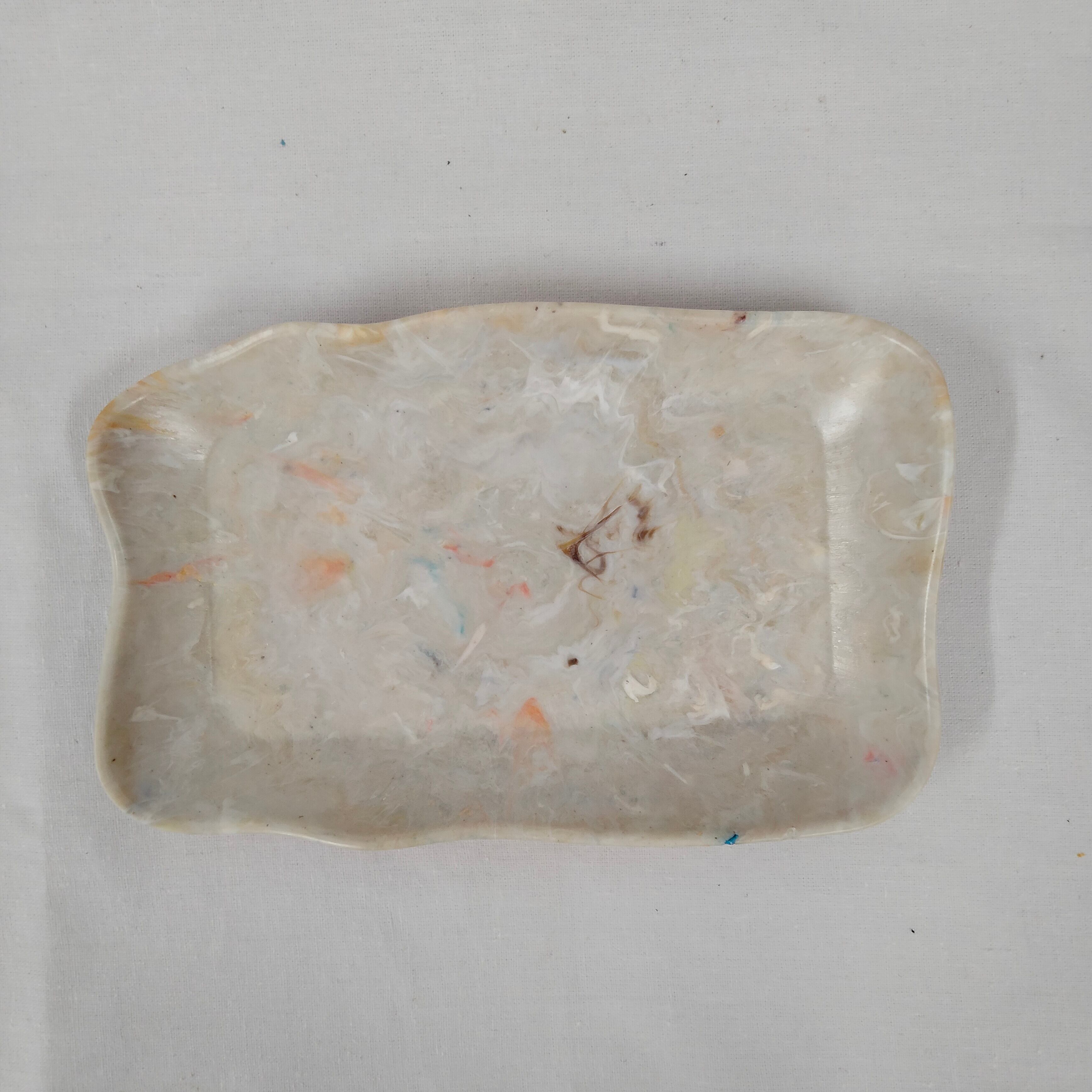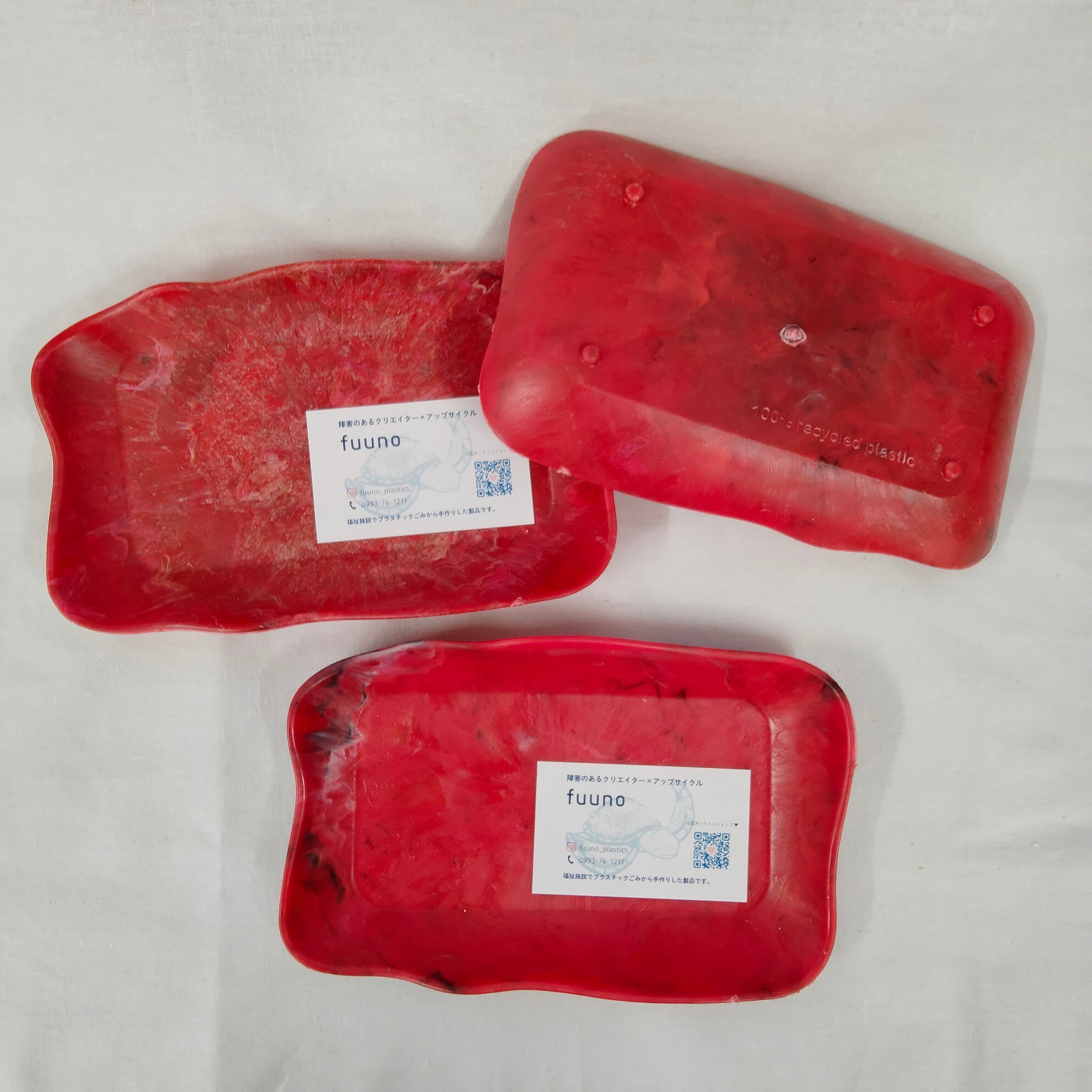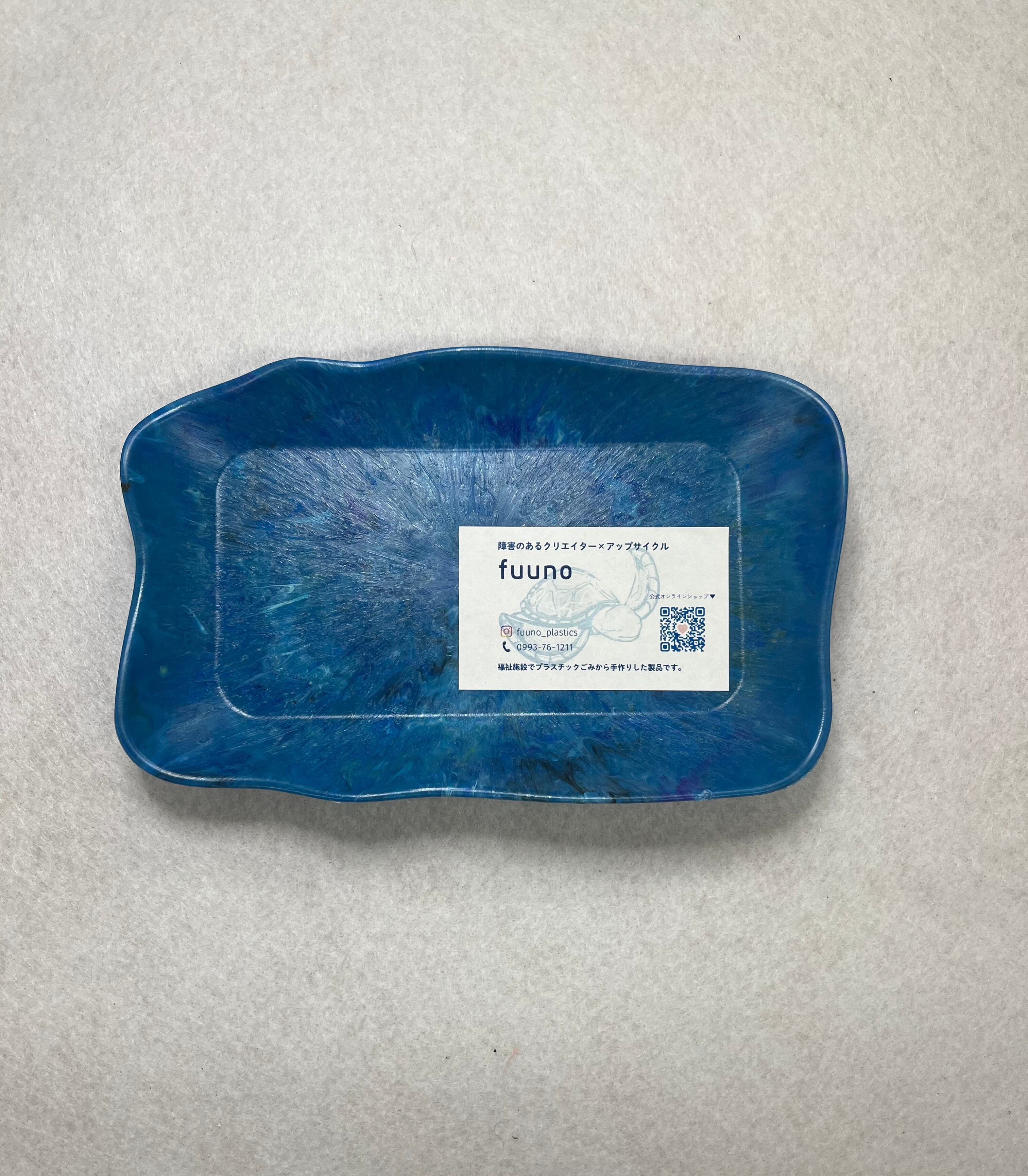 身の回りのプラスチックごみをとかして作ったコイントレーです。